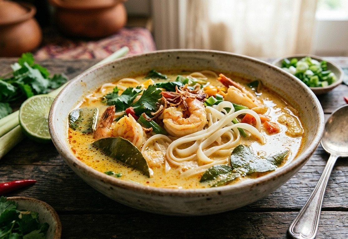 This vibrant noodle soup delivers a complex symphony of Southeast Asian flavors with a rich, creamy coconut broth infused with fragrant lemongrass, ginger, and chili. It's a deeply satisfying meal that transports your taste buds.