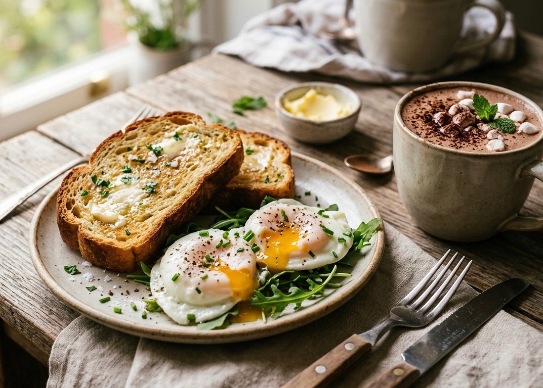 💡 Tip: Cracked eggs can be enjoyed by dipping the toast directly into the yolk and white, or stirred with soy sauce and pepper for a flavorful broth.