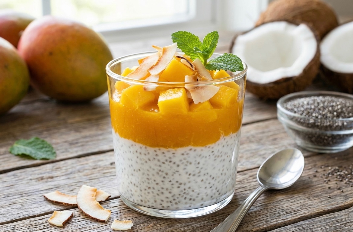 Elevate your breakfast or snack with this vibrant and nutritious chia seed parfait. Layers of creamy coconut chia pudding and sweet mango create a delightful treat that's as beautiful as it is beneficial.